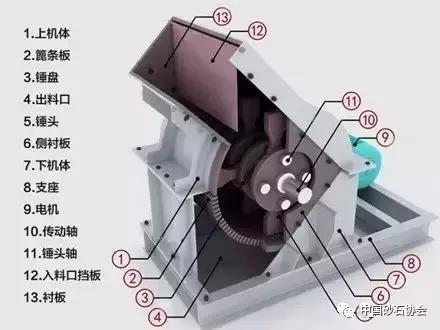錘破由轉子、錘頭、錘架、銷軸、機架、破碎板、篩板、傳動部件等組成,錘頭鉸支在錘架上。