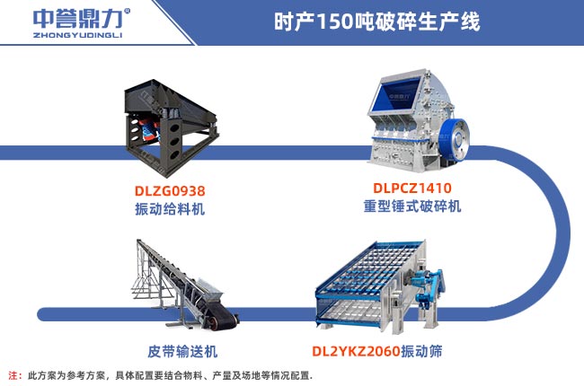 配置150噸石料生產線需要用到給料設備、破碎設備、篩分設備、制砂設備、輸送設備等,針對不同硬度的巖石物料及用戶生產需求,時產150噸石料廠機器配置大致分為以下幾種: