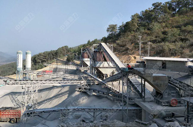 設備配置:DLZG1550給料機、DLPCZ1615重錘破碎機 、3YK2470振動篩*2臺、2YK2470振動篩*2臺
