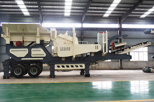 車載移動破碎機設備破碎等設備固件化在輪胎底座上,將液壓、電控體系整合到移動站上,可以根據生產需求配置粉碎、制砂、篩選分級等設備,切換場地時一體式移動,不用基礎建
