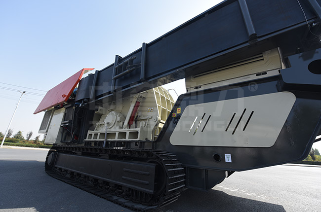 DLMC1512履帶破碎移動站運輸長度14620×3200×3693mm,側出土高度2000mm,主卸料高度3100mm,設備總功率353kw。