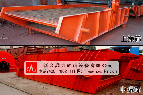 振動篩是石料生產中篩分物料的設備,也是必不可少的設備之一,可分為上振篩和中振篩,圖片如下: