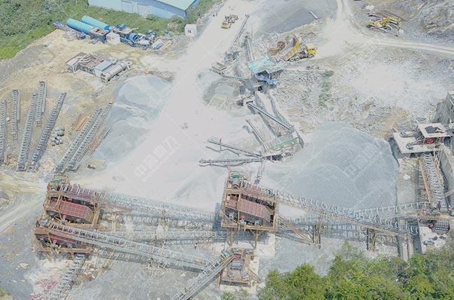 整條生產(chǎn)線由振動給料機、重錘破、雙轉子制砂機、整形機、振動篩組合而成,可以同時生產(chǎn)出石料和砂子,可謂是兩用。