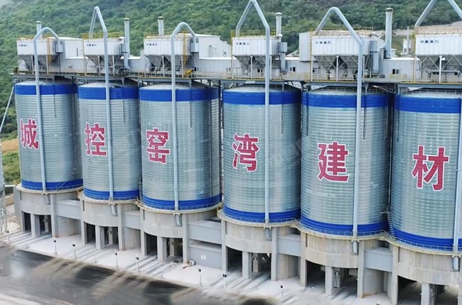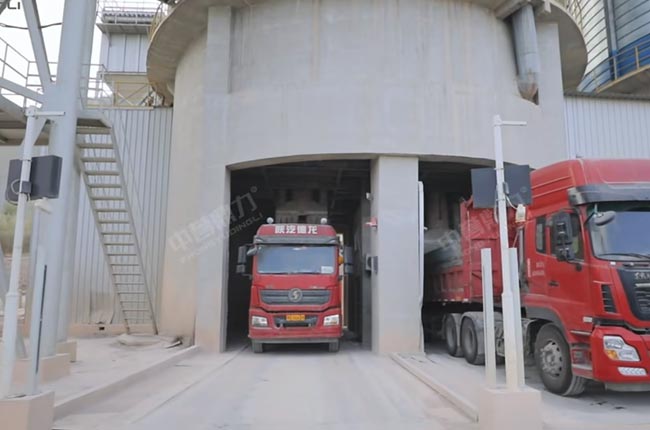 皮帶機(jī)進(jìn)入罐倉(cāng)(5000噸/個(gè)),某種成品料滯銷(xiāo)時(shí),通過(guò)庫(kù)下皮帶機(jī),轉(zhuǎn)存到成品緩沖倉(cāng),成品緩沖倉(cāng)下面有一個(gè)通廊,也可以已實(shí)現(xiàn)自動(dòng)裝車(chē)。