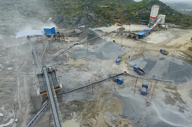 石灰石硬度不高,采用“給料機+重錘破+振動篩+制砂機+洗砂機”配置,可以減少設備投資,基礎建設費用,可減少40%以上的費用投資。