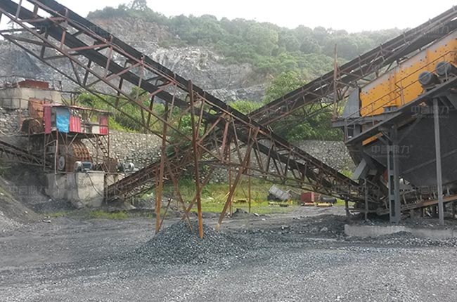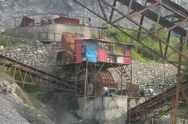 我公司對該項目盡心合理設計,生產線僅有一臺重錘式破碎機,無其他破碎設備,PCZ1512型號重錘破進料口大,可破不大于75公分的原料,根據出料間隙的調整,可直接生產出石子骨料,工藝簡單,節省二級破碎設備、皮帶機、基礎建設等投資。