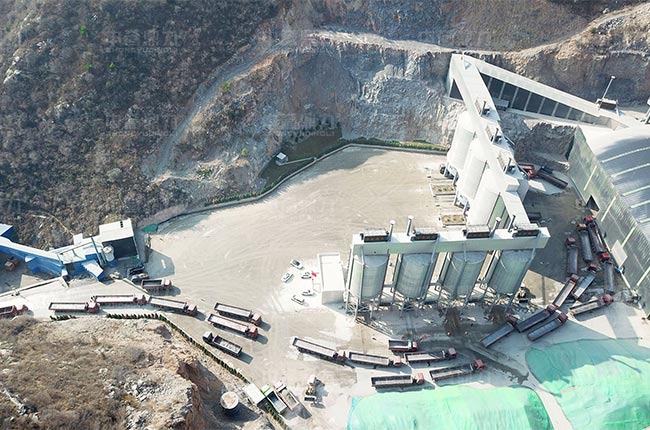 該項目主破采用PCZ1615重錘式破碎機,整形破,制砂機及整套礦山設(shè)備,整個工藝進(jìn)行了封閉式環(huán)保設(shè)計,還配置了自動裝車系統(tǒng),司機刷卡后,散裝機放料進(jìn)行自動裝車,大大提高了裝車速度。