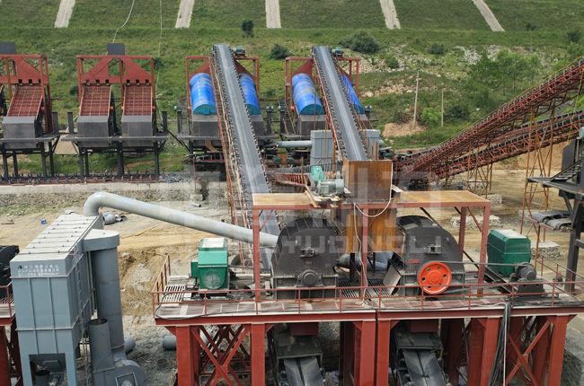 石料破碎加工生產線除主要破碎設備外,還需要給料機、振動篩、洗砂機、輸送機等設備,其具體用途如下: