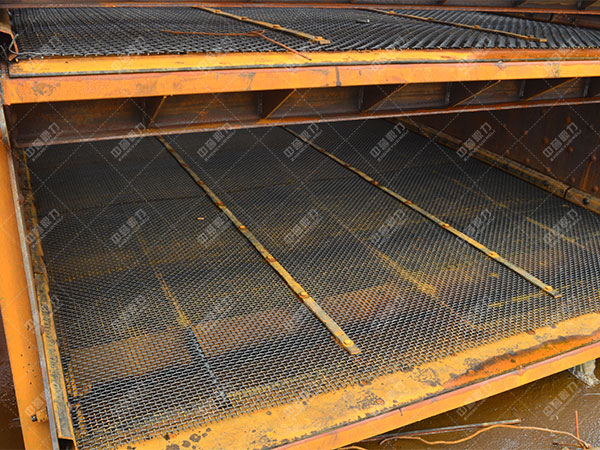 2)有的篩網表面較寬的ykz圓篩機,如YAH2460單篩,篩網表面2.4m x 6.0m,則將篩網分成兩半,中間由壓板、螺釘將篩網壓住,兩頭用繃緊鉤將篩網向篩框方向繃緊,這類辦法在次安裝時尚可,多次安裝后,由于不變在篩框梁上的帶內螺紋的不變板上的螺紋或銹死,造成螺釘拆不出來,給維護供應多不便,另外,從篩網無效的狀況看,盡管篩網變短了,但篩網摩擦扯斷的局面無改進。