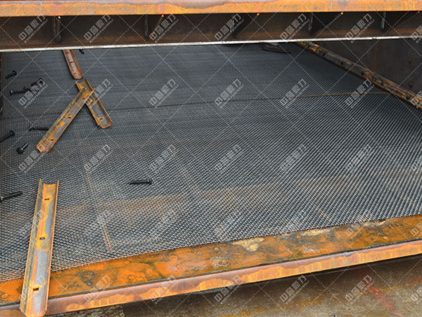 1)將支撐梁(扁鋼)改為角鋼,再在角鋼上表面襯膠,縮小篩網與角鋼的剛性接觸;